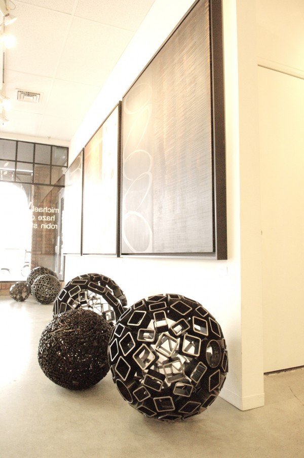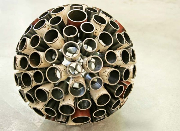 creates planets and moons from hundreds of small scrap metal pieces called “droppings” leftover form other sculpting projects.