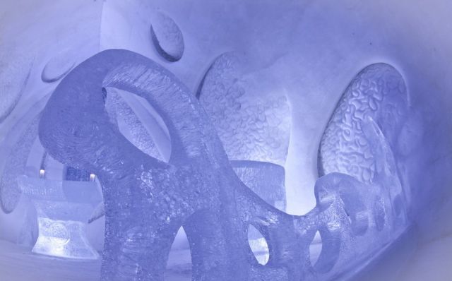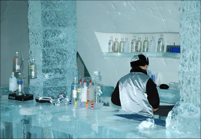 Hotel de Glace has about 80 beds, all made of ice. Only the bathrooms are heated. They are located in a separate insulated structure. Tourists pay about $200 per night to stay here.