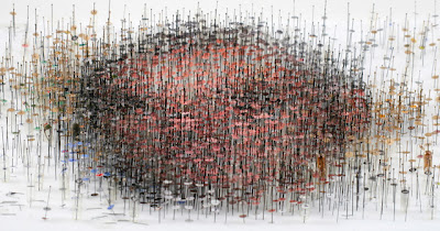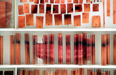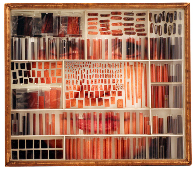 New York artist Michael Mapes creates elaborate specimen boxes by dissecting photographs and then compartmentalizing individual fragments within plastic bags, glass vials, magnifiers, in gelatin capsules and on insect pins.