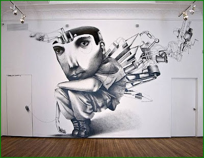 Claudio Ethos is a Brazilian street artist from São Paulo. Its huge frescoed surreal characters, mostly black and white, have been around the world. Dramatic atmospheres that maintains both the walls only on paper.