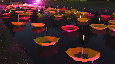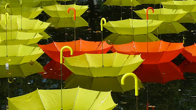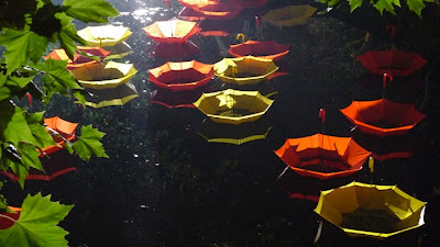 Just Sometimes… is an installation by UK-based artist Luke Jerram, in which more than 1,000 umbrellas bob along the Rotterdam canal in a floating swirl of visual sensations. The sea of colorful umbrellas was placed along the canal, temporarily, as a part of the Witte de With Festival. In the piece, the basic functions of an umbrella are literally flipped around as the tops of the protective devices touch the water in upside-down interactions.