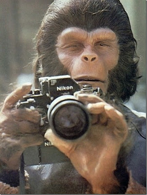 | Roddy McDowall (as Cornelius from Planet of The Apes) with a Nikon F |