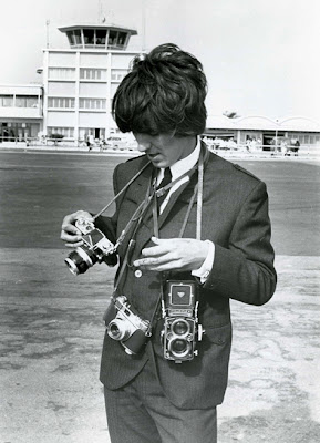 | George Harrison with (left to right) A Nikon F, A Kodak Retina IIS and his Rolleiflex |