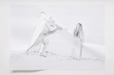 Using nothing more than a pencil, a piece of paper, and some swift and scrupulous cuts, Italian artist Andrea Mastrovito offers a contemporary depiction of martyrdom. Each image presents a different form of death, some rather torturous, that has been documented in historical martyrologies. The artist provides a conceptual visual of said manners of martyrdom through a unique practice of pencil on paper.