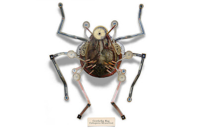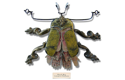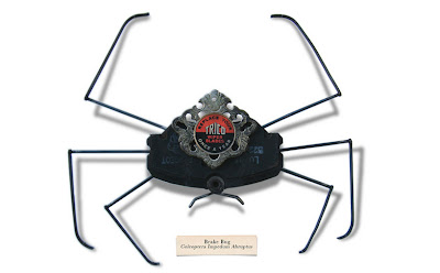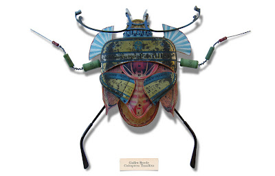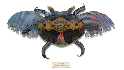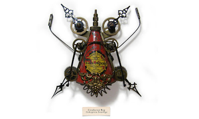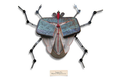 British artist Mark Oliver has created a series of insects called 'litterbugs' brought to life entirely from trash. using eyeglass-arms for antennae and clock hands for legs, the species was developed in order to adapt to the harsh and changing urban landscape.