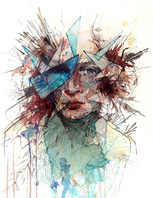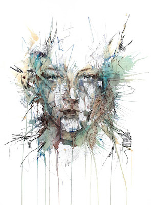 UK-based illustrator Carne Griffiths creates these striking portraits with uncommon mediums such as tea brandy, vodka, whiskey, graphite and calligraphy ink. His drawings most frequently explore human and floral forms, as says he’s “fascinated by the flow of line and the ‘invisible lines’ that connect us to the natural world.” The four pieces above are part of a limited edition postcard set just released by Griffiths, each of which comes in a fancy custom-illustrated, wax-sealed envelope.