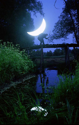 "Each photograph is a poetic tale, a little poem in its own right. Therefore each picture is accompanied by my own verse, which I wrote when I drew my sketches for the photographs. So it turns out that the Moon overcomes our loneliness in the universe uniting many of us around it." Leonid Tishkov