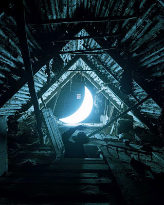 “Private Moon” is a visual poem telling the story of a man who met the Moon and stayed with her for the rest of his life. In the upper world, in fact in the attic of his own house, he saw the Moon falling off from the sky. Once she was hiding from the Sun in a dark and damp tunnel. But the passing trains frightened her. Now she came to this man’s house. Having wrapped the Moon with warm blankets he treated her with autumn apples, gave her a cup of tea, and when she got well he took her in his boat across the dark river to the high bank overgrown with moon pine-trees. He descended into the lower world dressed in the clothes of his deceased father and then returned from there lighting up his path with his personal Moon. Crossing the borderline between the two worlds across a narrow bridge, immersed in a dream and taking care of this heavenly creature, the man became a mythological being living in a real world as in a fairytale.