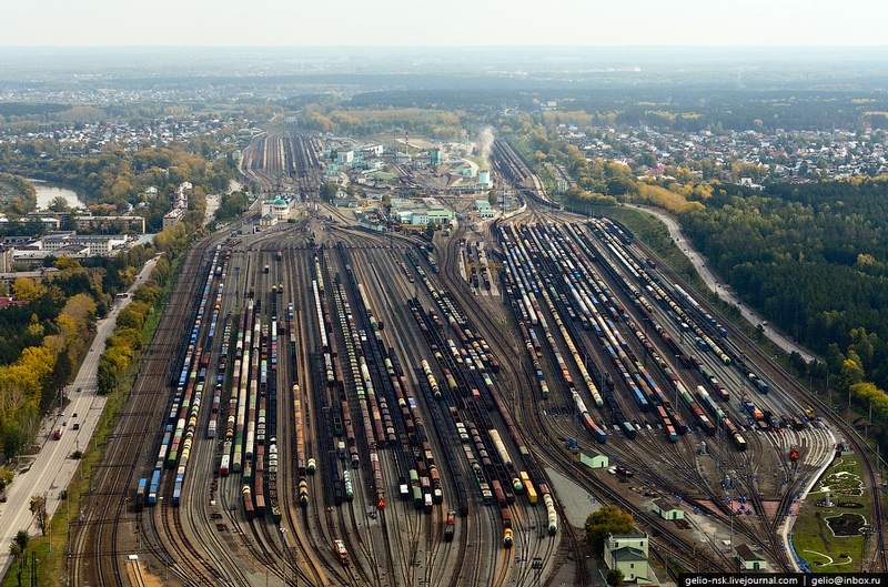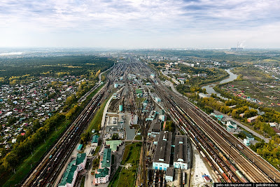 Inskaya is one of the largest railway yards in Russia. It is located in Novosibirsk. The transport node unites cargoes from Kuzbass, the Urals and Central Asia letting traffic flow in five directions and to 37 destinations. Daily turnover amounts more than twenty seven thousand cars. Here are some photos of the railway yard from above.