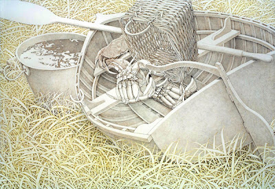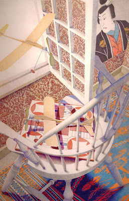 Dirk Bach's drawings incorporate objects such as chairs, baskets, rugs, grass textures, Japanese prints, crustaceans, calligraphy, etc. He describes these works as "largely self-reflexive or autobiographical, suggesting conditions and events through symbolic and metaphorical associations."