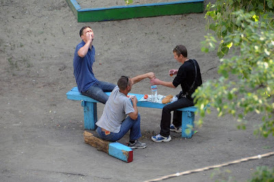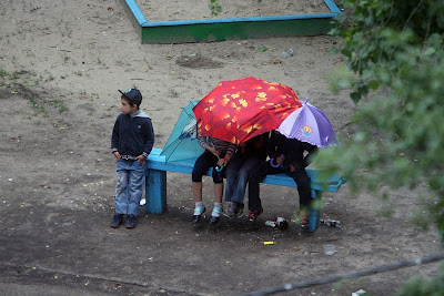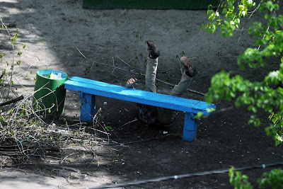 In his series entitled ‘Bench‘, photographer Eugene Kotenko shot the activities that took place around a specific bench outside of his apartment over a period of four years. Documented in the Ukraine, the bench was located beside a government housing building.