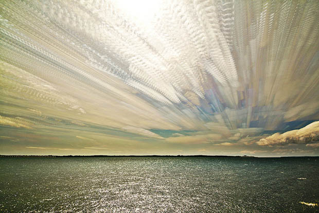 Stacking long-exposure photos of stars leads to some pretty neat photos and time-lapse videos, but what happens if you use a similar technique for clouds? That’s what photographer Matt Molloy does. His “photo stack” images of landscapes show clouds that look like smears and brush strokes across the sky.