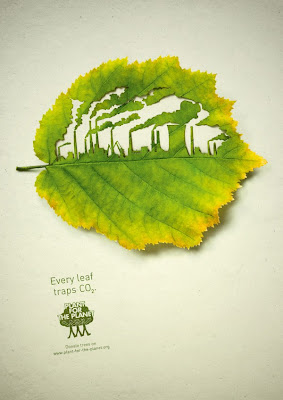 A wonderfully executed ad campaign by Legas Delaney for Plant for the Planet, using cut leaves symbolizing their ability to absorb CO2.