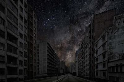To bring a sense of nature back into these environments, Cohen has taken a bit of a scientific approach. He travels to places free from light pollution and captures the skies that rotate on the same axis as the urban skylines. Those same skies that were at some point visible above the cities are then superimposed into the darkened cityscapes.