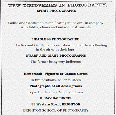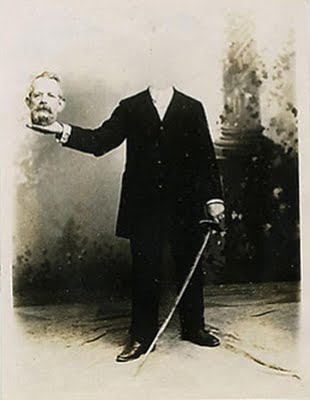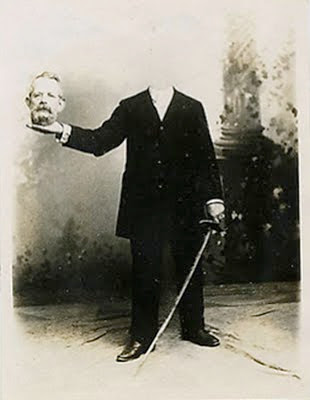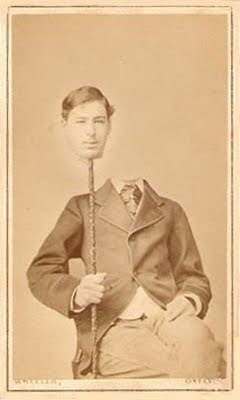 The 19th century is generally remembered as a time of science and technology, when the ideas of Charles Darwin and the telegraph of Samuel Morse changed the world forever. However there was a lighter side to the Victorian era. A number of Victorian photographers combined images from more than one negative to create illusions or novelty portraits. "Headless Photographs" featured men and women with "their heads floating in the air or in their laps".
