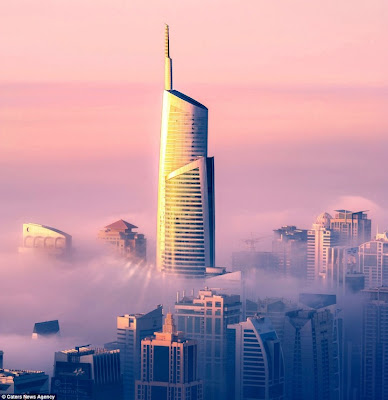 Dubai is a busy city. The capital of the United Arab Emirates is continuously moving and expanding sideways and upwards, but in these photographs it appears calm and at peace as the morning fog engulfs even the tallest skyscrapers. Shot from the 85th floor of the Princess Tower in the Dubai Marina, these stunning images capture rare moments of tranquility. The colourful photographs give a different impression of the UAE capital dubbed the 'City of Gold'.