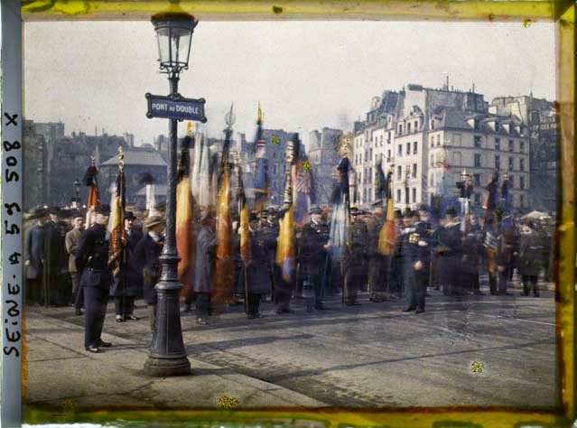 | Parade of foreign delegations on the deck of Double for the funeral of Marshal Foch view taken towards the quai de Montebello by Stéphane Passet |