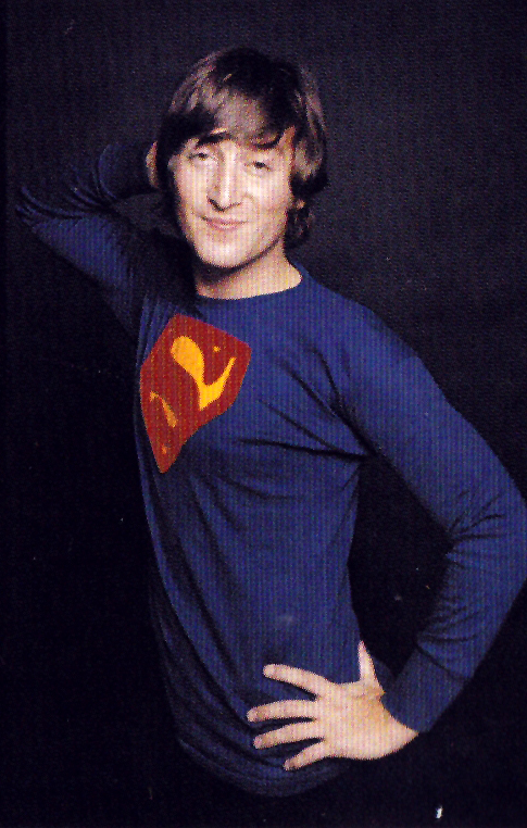 Funny Pictures of John Lennon Wearing a Superman Shirt in 1965