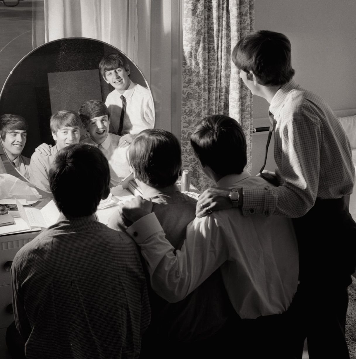 | Margate, July 8-13,1963. The Beatles kill time between performances gazing at their reflections for a Leslie Bryce-arranged pose. |